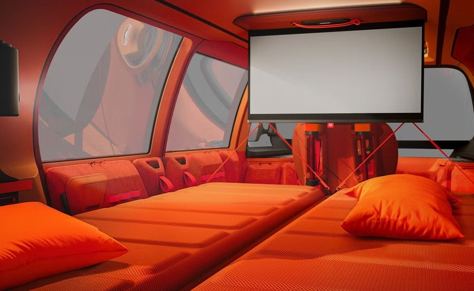 บาะหลังพับลงกลายเป็นเตียงยาวสองชิ้นและมีจอโปรเจ็กเตอร์พับเก็บได้ ช่วยเปลี่ยนพื้นที่เป็นมุมพักผ่อนหรือโฮมเธียเตอร์ส่วนตัวได้ทันที นอกจากนี้ยังติดตั้งระบบ V2L (Vehicle-to-Load) เพื่อจ่ายไฟให้เครื่องใช้ภายนอก เช่น เตาไฟฟ้าหรือเครื่องเสียง พร้อมเครื่องอัดลมในตัว เหมาะกับผู้ที่ชอบแคมป์ปิ้งหรือกิจกรรมเอาต์ดอร์